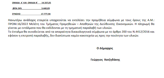 Σε κάθε περίπτωση αυτοί που τάχα ενδιαφέρονται για το "καλό" της πόλης και τους αρέσει η ΔΙΑΦΑΝΕΙΑ και ίσως τα χρηστά ήθη ας φροντίσουν να μαθαίνουν πως γίνονται οι προμήθειες του δήμου έτσι ώστε όταν έρθουν στα πράγματα να βρίσκουν μαρκαδόρους με 0,21 λεπτά του ευρώ και να μην μας τους χρεώνουν περισσότερο όπως έκαναν οι προηγούμενες διοικήσεις που προφανέστατα και δεν έχουν μούτρα να βγουν να μιλήσουν για ΣΠΑΤΑΛΗ αφού αυτοί τα πλήρωναν περισσότερο. Για όποιον δεν πιστεύει υπάρχουν στη ΔΙΑΥΓΕΙΑ οι προμήθειες γραφικών υλών της περιόδου Βασίλη Βαλασόπουλου με άλλους προμηθευτές που δεν ήξεραν πως να παρουσιάσουν καλές τιμές και είχαμε μείνει με την απορία γιατί το κάνουν!