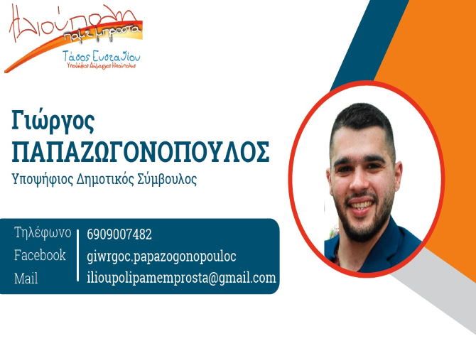 ΗΛΙΟΥΠΟΛΗ ΧΩΡΙΣ ΟΡΙΑ: Ο μοναδικός υποψήφιος δημοτικός σύμβουλος που είχαμε παίξει από την συγκεκριμένη παράταξη στις δημοτικές εκλογές του 2019. (δες εδώ). Μία από τις τέσσερις επιλογές μας για τις προσεχείς δημοτικές εκλογές που θα σας ανακοινώσουμε σε 10 μέρες από σήμερα. Όποιοι μας διαβάζετε καθημερινά έχετε ήδη καταλάβει ποιοι είναι οι άλλοι τρεις.