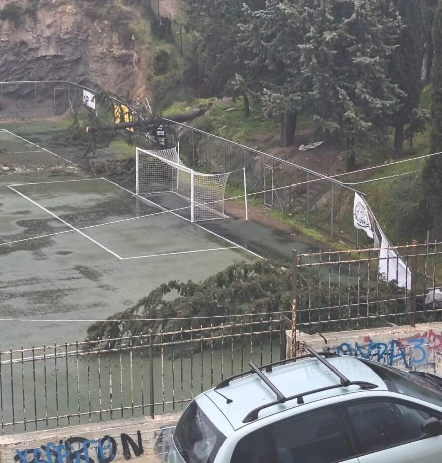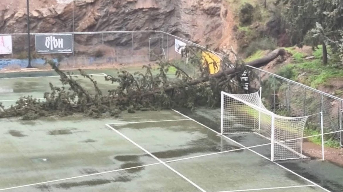 Τα δύο δέντρα κατέρρευσαν με διαφορά λίγων λεπτών. Στο γήπεδο δεν υπήρχαν άτομα εκείνη την ώρα και δεν υπήρξε κάποιος τραυματισμός.