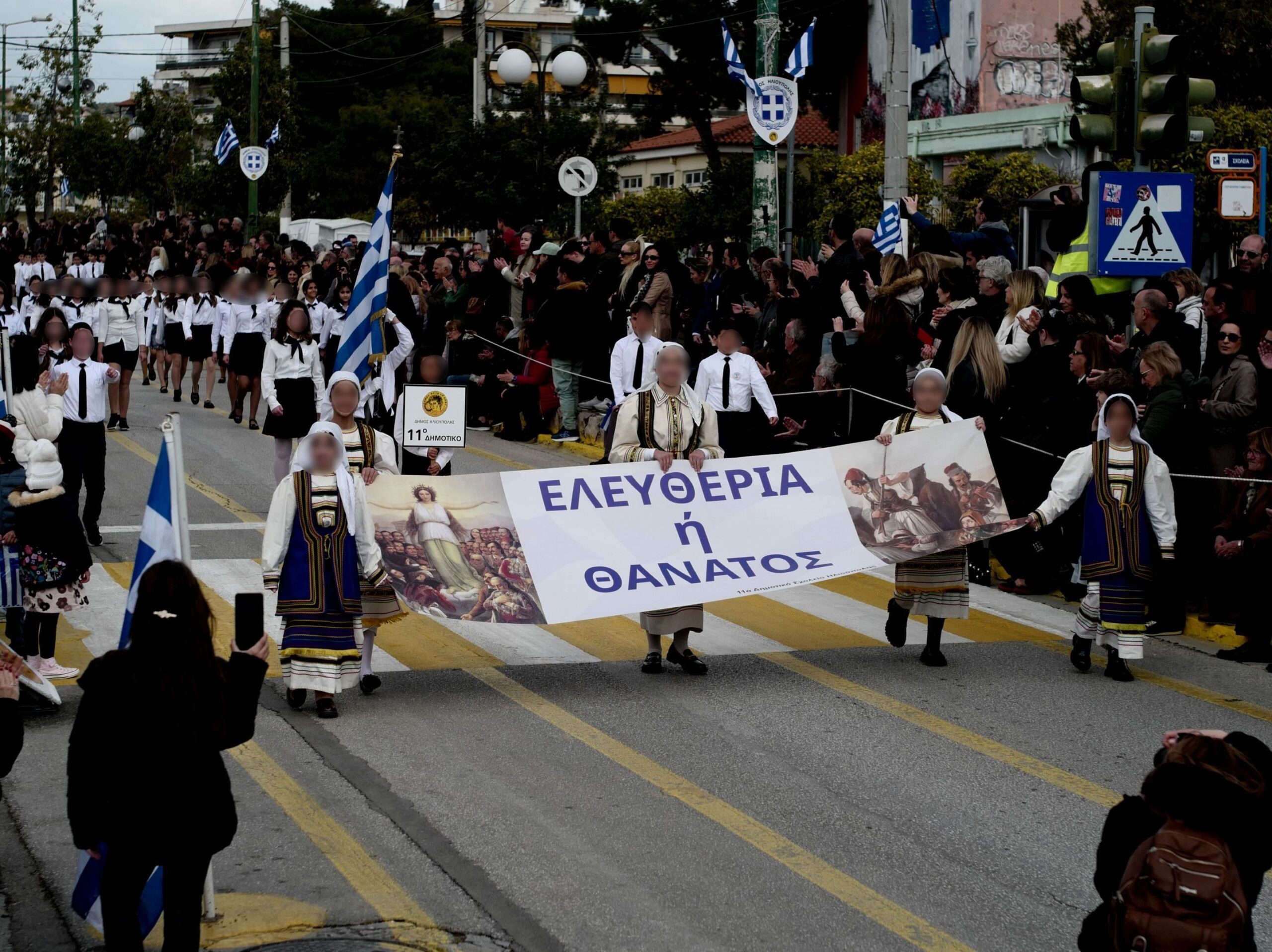 Η γιορτή ξεκίνησε πατροπαράδοτα από την πλατεία Φλέμινγκ όπου, αφού πραγματοποιήθηκε η Επιμνημόσυνη Δέηση από τους Πατέρες της Εκκλησίας, ο Δήμαρχος της πόλης κ. Ευστάθιος Ψυρρόπουλος εκφώνησε τον πανηγυρικό της ημέρας, όπου ξεκίνησε τον λόγο του αναδεικνύοντας τον σημαντικό ρόλο που διαδραμάτισε η Εκκλησία για την Επανάσταση, πλάι στους αγωνιστές μας.Ο Δήμαρχος Ηλιούπολης αναφερόμενος στην επανάσταση επισήμανε το παγκόσμιο μήνυμα της ισότητας, της δικαιοσύνης, της ανεξαρτησίας, της αλήθειας, της αυτόνομης πορείας των χωρών, της αποτίναξης οποιουδήποτε ζυγού.