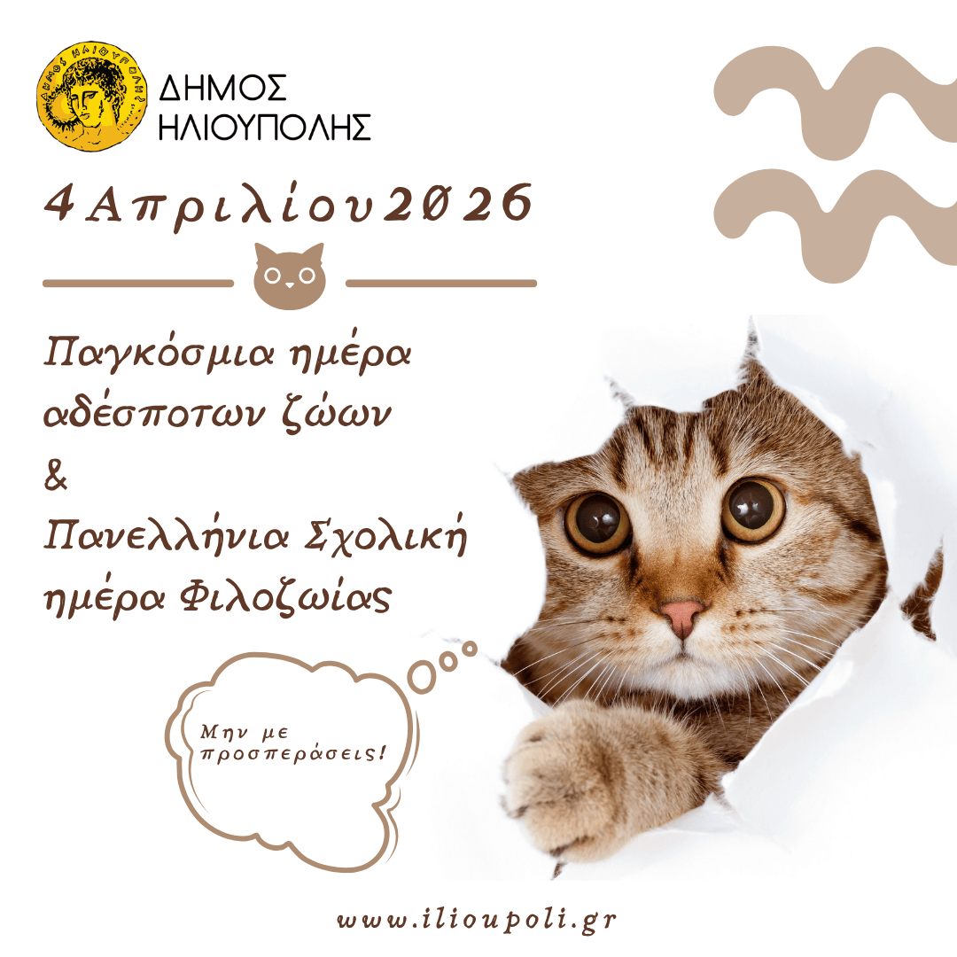 Με αφορμή την 4η Απριλίου, Παγκόσμια Ημέρα Αδέσποτων Ζώων και Πανελλήνια Σχολική Ημέρα Φιλοζωίας, την Πέμπτη 2 Απριλίου, ο Δήμος μας, κατόπιν πρόσκλησης του 4ου Γυμνασίου Ηλιούπολης, πραγματοποίησε ενημερωτική δράση με στόχο την ευαισθητοποίηση των μαθητών σε θέματα φιλοζωίας και προστασίας των αδέσποτων ζώων.Κατά τη διάρκεια της επίσκεψης, οι μαθητές είχαν την ευκαιρία να γνωρίσουν από κοντά τη γάτα «Περσεφόνη», η οποία αποτέλεσε ένα ζωντανό παράδειγμα της αξίας της φροντίδας και της αγάπης προς τα ζώα. Μέσα από έναν ουσιαστικό και διαδραστικό διάλογο, αναδείχθηκαν σημαντικά ζητήματα, όπως ο σεβασμός προς κάθε μορφή ζωής, η ανάγκη άμεσης ενημέρωσης ενός ενήλικα ή των αρμόδιων αρχών σε περιπτώσεις κακοποίησης ζώου, καθώς και η σημασία της στείρωσης ως βασικού μέτρου για τον περιορισμό του φαινομένου των αδέσποτων.
