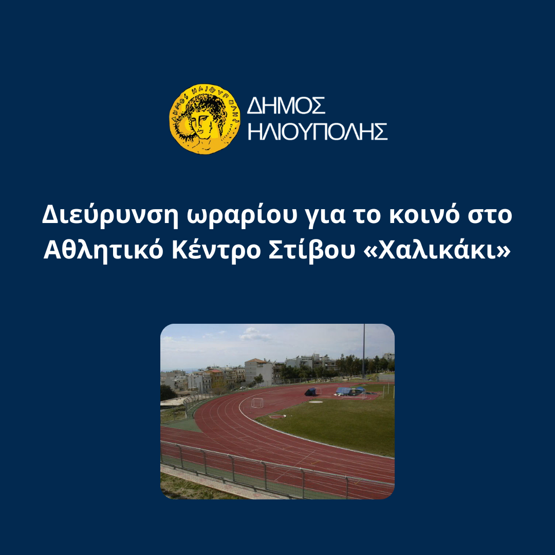 Ενημερώνουμε τους δημότες & κατοίκους ότι το ωράριο για το κοινό στο Αθλητικό Κέντρο Στίβου «Χαλικάκι» διαμορφώνεται ως ακολούθως: